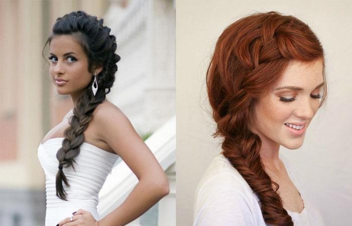 Коса набок, исходя из названия, выполняется с одной стороны головы. Для плетения потребуются волосы с длиной от плеч. Косичку выполняют, используя разные технологии перехлеста прядей. Возможно совмещение вариаций в единой прическе.