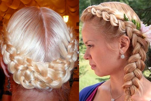 - Попробуйте заплести две косы наоборот по бокам, а затем заверните их сзади венком. Такая укладка точно не останется незамеченной!