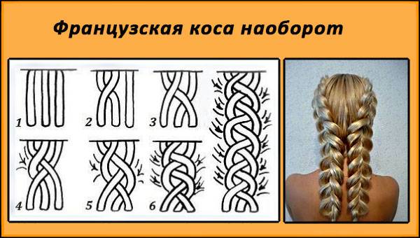 Такая несложная схема того, как плести косу наоборот, поможет вам создавать красивые укладки самостоятельно.