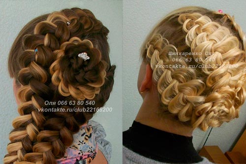 11. Для придания прическе большего объема, перед фиксацией лаком, нужно вытянуть петли косы.