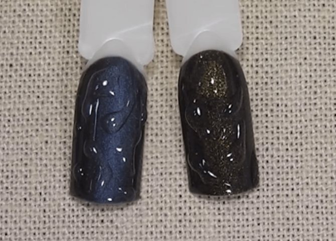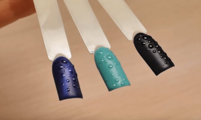 Слишком броский маникюр не вызывает особого восторга, а скорее чересчур привлекает внимание к вашей особе. Комбинируйте капельки с темными оттенками лаков — так вы сможете сделать их максимально глубокими и насыщенными