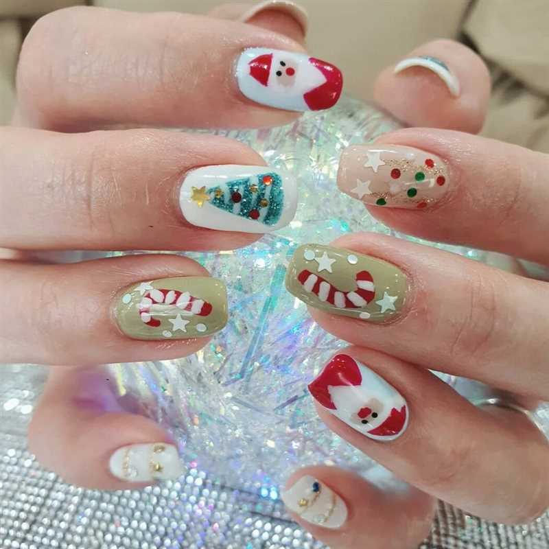 Кроме того, можно использовать разноцветный лак для создания фона и добавить элементы декора, такие как бантики, звездочки или шапочки Санта Клауса. Такой мотив будет удивительно ярким и праздничным!