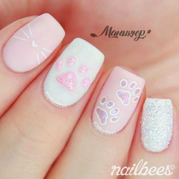 Дизайн ногтей с кошками, мордочками и лапками: фото