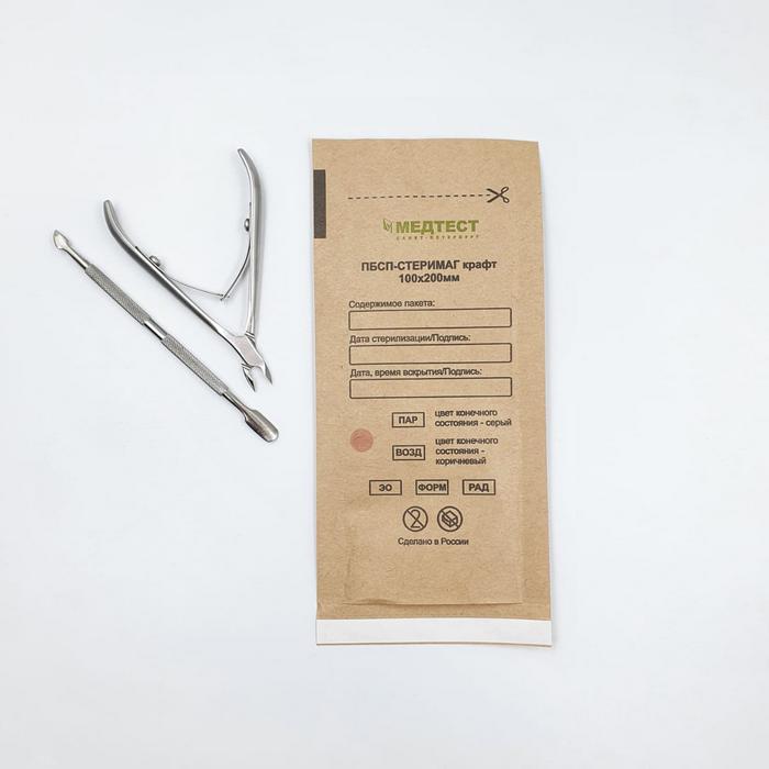 Крафт-пакет может иметь одну прозрачную сторону из жаропрочного полиэтилена. Такие упаковки обычно применяются в медицинских учреждениях, но вполне могут использоваться и в салонах красоты. Прозрачная сторона позволяет увидеть, какой комплект инструментов находится в пакете.
