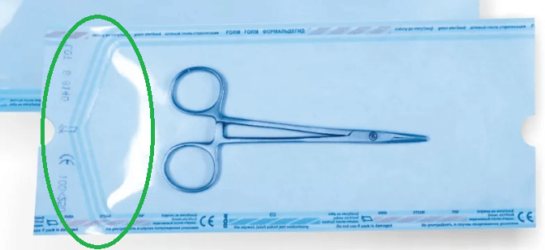 На большинство пакетов нанесена специальная разлиновка, куда записываются сведения о стерилизации. Допускается указывать информацию на шве.
