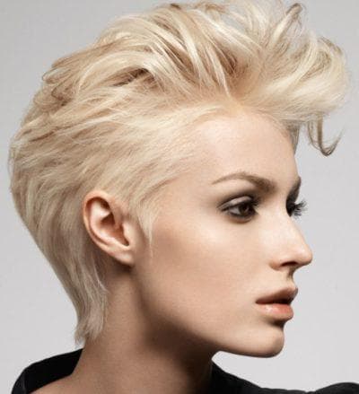 - Слоистая челка хорошо укладывается гелем, возможен легкий начес. Для вызывающего мальчишеского образа часто верхние удлиненные прядки вытягиваются вперед и вместе с челкой завиваются.