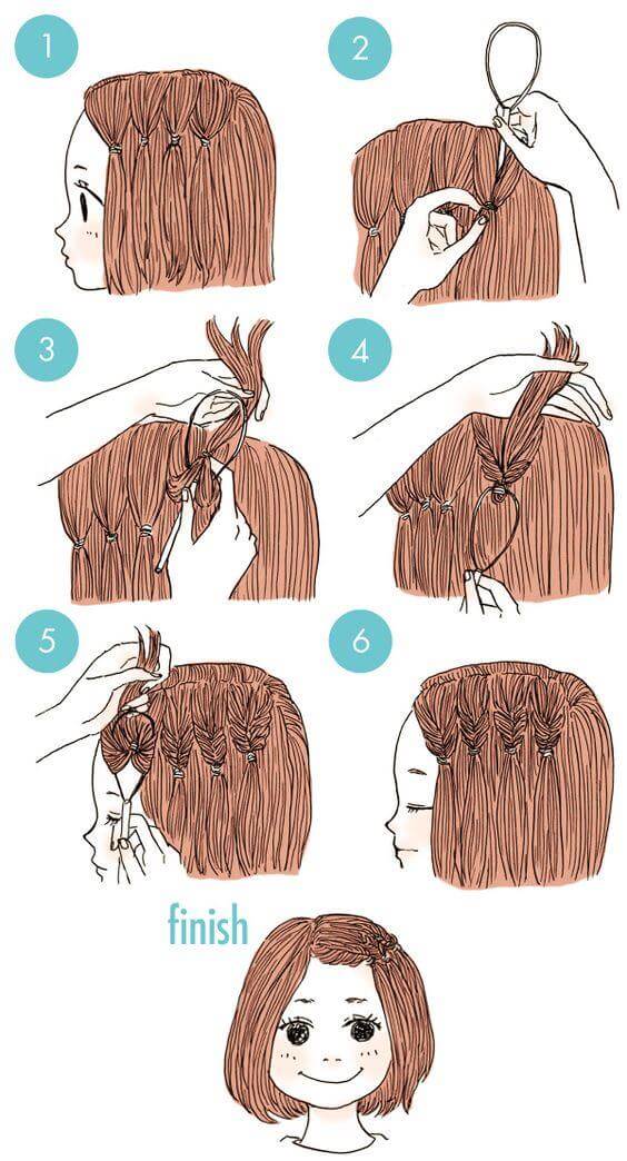 Для девочек по младше прически на каждый день для коротких волос выглядят поскромнее. Здесь, главная задача забрать волосы у лба, чтобы они не мешали ребенку во время учебы.