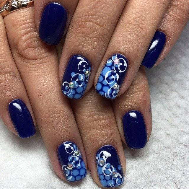 • Стразы. Чем короче ноготки, тем меньшего размера должны быть стразы. Современный рынок предлагает большое разнообразие форм, размеров и цветов блестящих камушков.