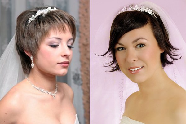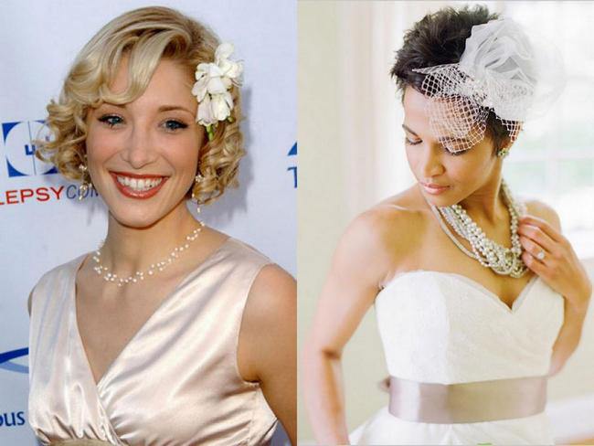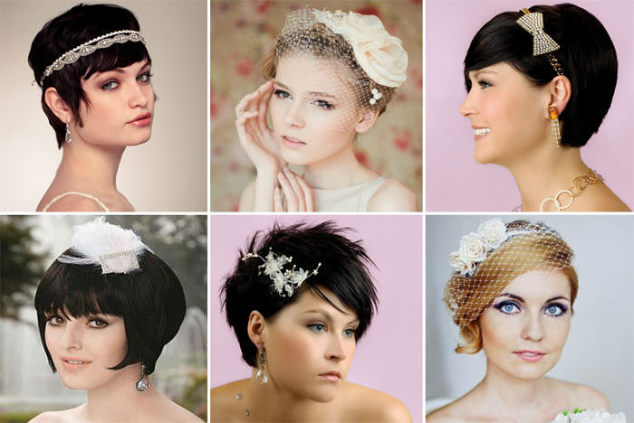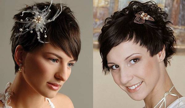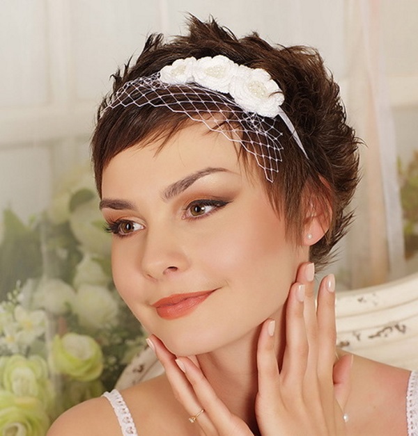 Такой вариант подойдет обладательницам самых коротких стрижек. На таких волосах, как правило, трудно добавить каких-то новых линий и волн. Но в руках опытного мастера даже самая экстремальная длина может заиграть по-новому. Во всяком случае, свадебную прическу на коротких волосах всегда можно дополнить аксессуарами