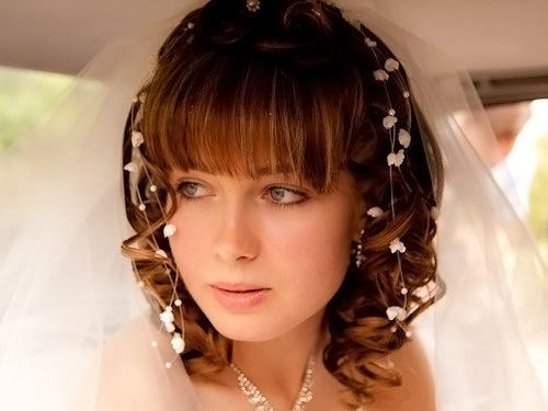Челка невесты может быть удлиненной или короткой, ассиметричной, рваной, прямой или косой. Рекомендуется посетить парикмахера примерно за неделю-две до торжества, чтобы он поработал с челкой, придал ей форму, форму прическе. Тогда и форма не успеет видоизмениться и поэкспериментировать с укладкой времени будет достаточно.
