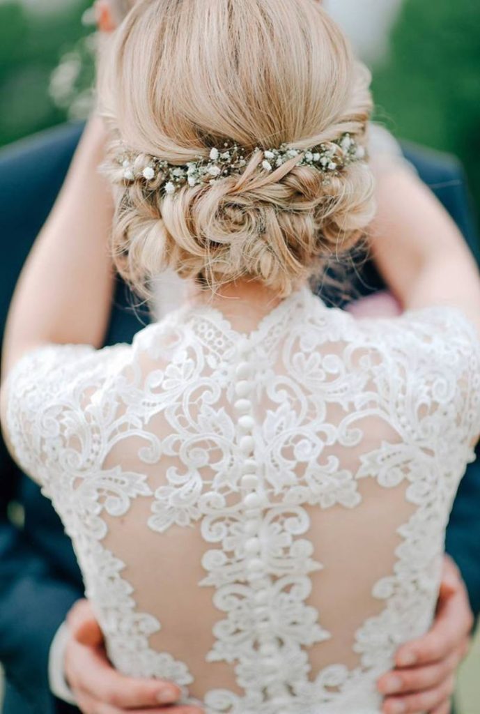 4. Убранные волосы. Этот тренд подойдет для утонченных невест, излучающих нежность и красоту. Таких девушек не нужно украшать, достаточно лишь скромно подчеркнуть их природное сияние и привлекательность. Этот тренд обещает быть очень популярным в нынешнем году, так как образ невесты сам по себе является нежным, робким и девственным. Прически с собранными, либо частично заколотыми волосами смотрятся очень женственно.