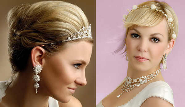 Роскошная диадема на коротких волосах мгновенно добавляет образу королевского величия. На коротких волосах лучше всего смотрятся изящные тонкие диадемы, без яркого декора, украшенные небольшими драгоценными камнями или жемчугом.