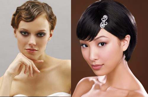 Эта стрижка – идеальный выбор для создания модной прически на очень короткие волосы. Она очень популярна и в повседневной жизни, и для праздничного образа. Ее легко можно украсить декоративными пышными перьями и лентой на область лба. Аксессуар можно выбрать как узкий, так и широкий.