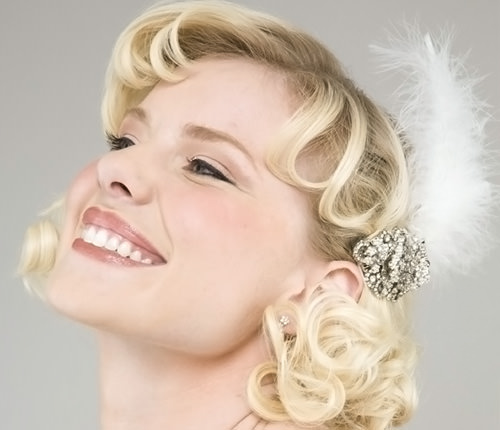 Красивые разлетающиеся кудряшки многим поднадоели и в повседневной жизни. Для торжественного момента можно уложить короткие волосы крупными ровными волнами, бывшими невероятно популярными в прошлом столетии. Такой вариант отлично подойдет и с челкой, и без нее. Прическу можно дополнить повязкой, ободком, перьями или заколкой.