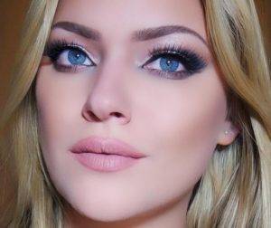 Голубые глаза сильнее всего реагируют на любые цветные блики, поэтому изменять их оттенок легче всего. Идеальным вариантом станет использование цветов на несколько тонов темнее собственных глаз. Но не переусердствуйте — на фоне слишком темных теней радужка глаз может полностью потеряться, и взгляд станет грубым и неестественным.