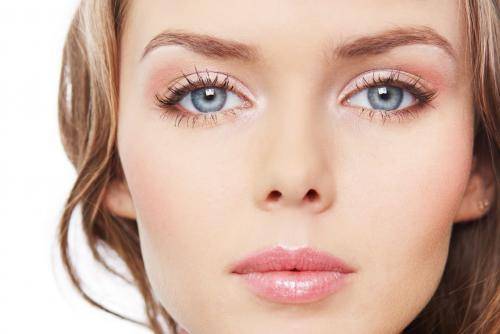 - Для голубых глаз подходят нежно-коричневые, молочные, персиковые и другие теплые тона