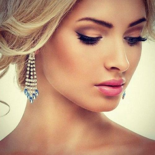 Для блондинок стилисты рекомендуют использовать нежные оттенки: жемчужный, шампань, можно использовать золотистую палитру или персиковую. В первую очередь, на кожу подвижного века можно наложить светлые сияющие тени, это придаст взгляду небольшую изюминку.