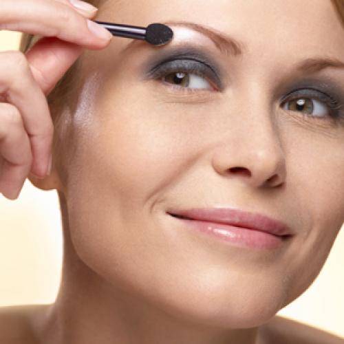Предлагает использовать матовые тени для маскировки недостатков и возрастных изменений на лице. Рекомендуется дамам бальзаковского возраста.