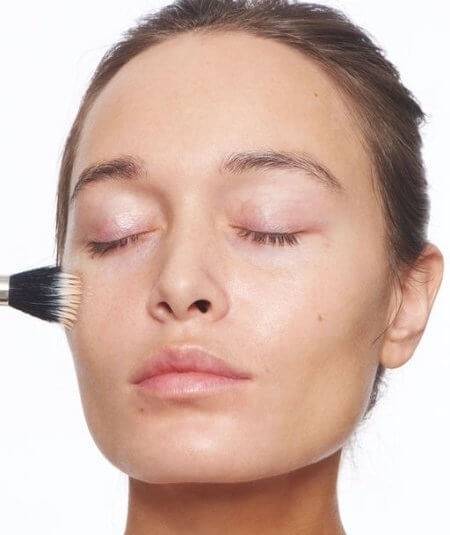 Легкими движениями нанесите тональный крем специальной кисточкой. Если вы поклонница другой текстуры – вы можете заменить его и другим средством.