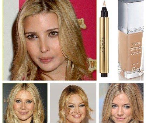 Существует два типа блондинок – с натуральным цветом волос и девушки, предпочитающие окрашивать волосы в светлый цвет. Первые, как правило, светлокожи, и именно им особо не рекомендуется перегружать лицо жирными тональными кремами. Им допускается использовать только легкую пудру и румяна нюдовых тонов.