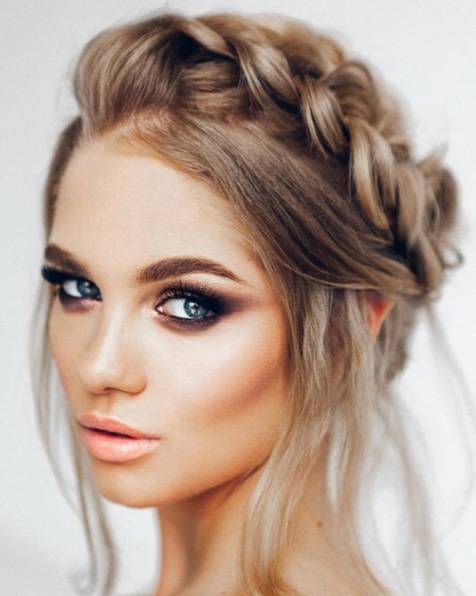 Выпускной вечер всегда проходит в красивой одежде с причёской и на каблуках. На таком ярком фоне внешность девушки может затеряться, поэтому следует рассмотреть варианты макияжа для серо-голубых глаз с применением контрастных элементов.
