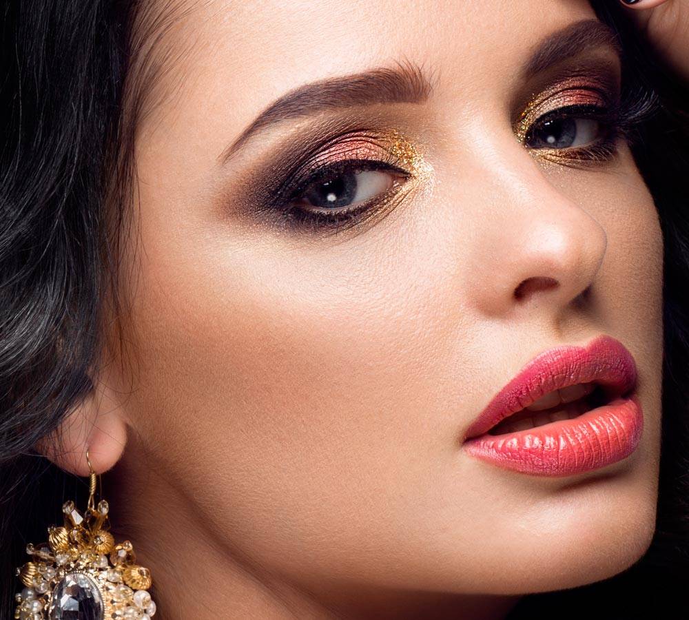 Праздничные идеи макияжа всегда выполняются с учетом многих факторов: цветотипа кожи, оттенка волос и, соответственно, наряда, в котором будет девушка. Карандаш для бровей создаст правильный изгиб, откорректирует форму и длину. Праздничный мейкап для должен выполняться с ярким акцентом. Это может быть даже мерцающая палитра. Блёстки, добавленные в качестве гламурного эффекта, будут смотреться уместно. Немаловажным моментом является выбор помады, но губы не обязательно должны быть яркими.