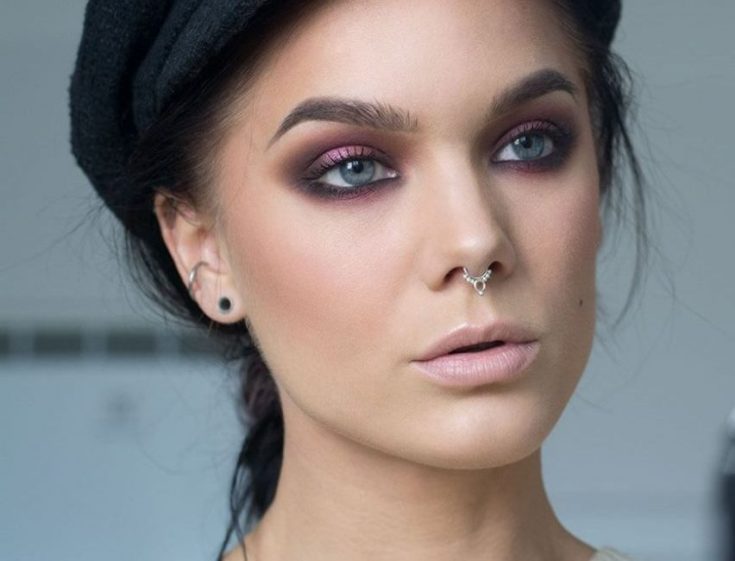 Что представляет собой макияж смоки айс для голубых глаз? Это дымчатый макияж в довольно-таки темных тонах. Я не понимаю, почему сейчас девочки размазывают светло-розовые тени по глазами и называют это смоки — нет, правильный смоки делают только темными тенями! Не обязательно это должен быть черный — очень красиво выглядит шоколадно-коричневый, фиолетовый, синий и зеленый, а мой любимый оттенок для смоки айс — серо-розовый.