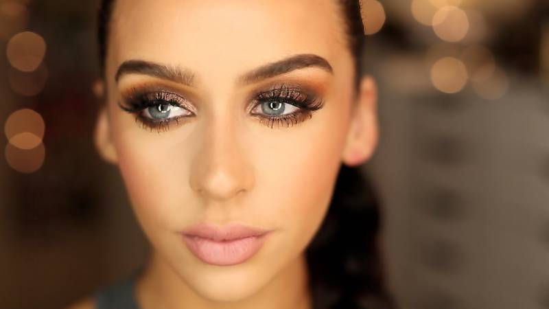 Следующее, что нужно понимать (и чего, кстати, не понимала я в свое время) — арабский макияж для голубых глаз и русых волос не подходит! Арабские девушки все смуглые, чаще всего у них темные волосы и абсолютно другой цветотип, на бледной коже не получается добиться такого яркого контраста и такого сияния. Поэтому если вы обладательница светлой кожи, то имеет смысл либо воспользоваться бронзатором и автозагаром, либо подождать лета и загореть естественным образом. Посмотрите, как делать арабский макияж для голубых глаз пошагово.
