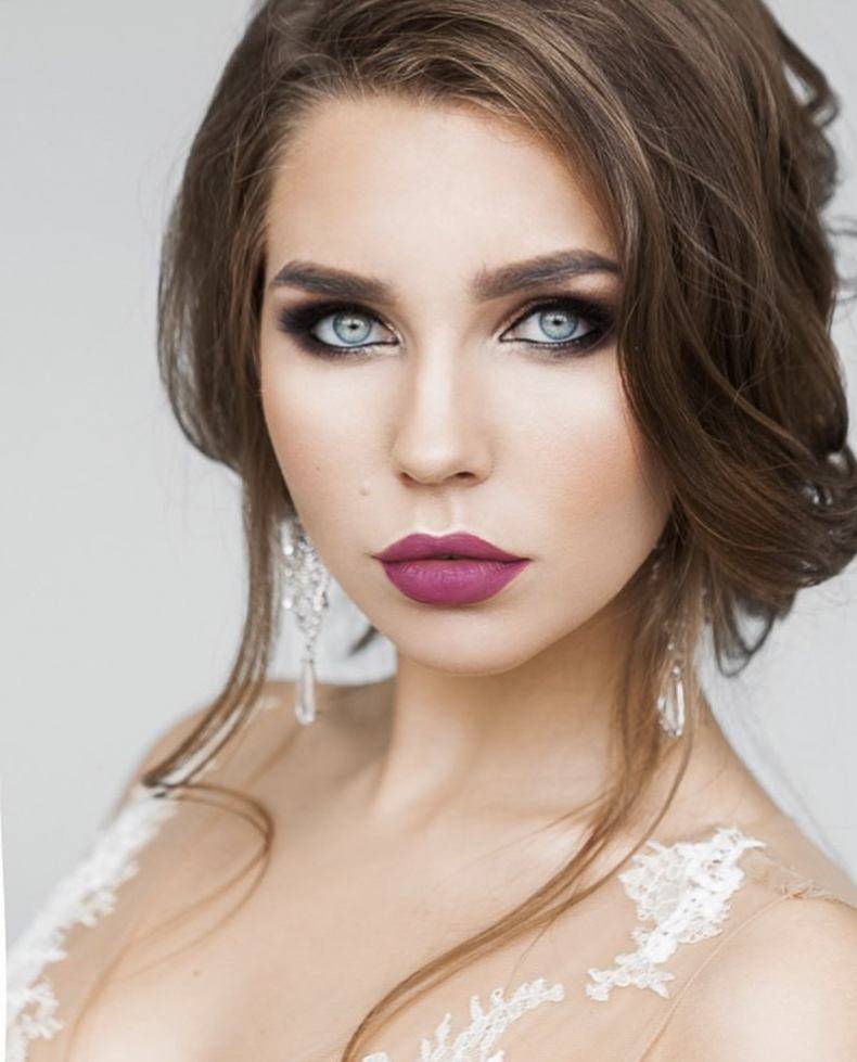 Для того чтобы подчеркнуть свои серые глаза, новобрачная может использовать насыщенные серые тона или тени серебряного, или металлического оттенка. Также подойдут светло-вишневые тени и тушь черного цвета.