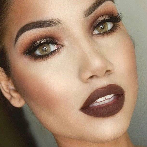 Если вам по нраву нежные, романтические образы, попробуйте сочетание с коричневой гаммой, тщательно растушеванной на веках. Дымчатый макияж позволит смягчить взгляд, придав ему очарование, таинственность и магнетизм.