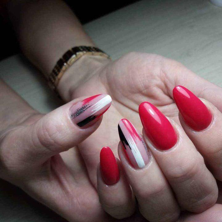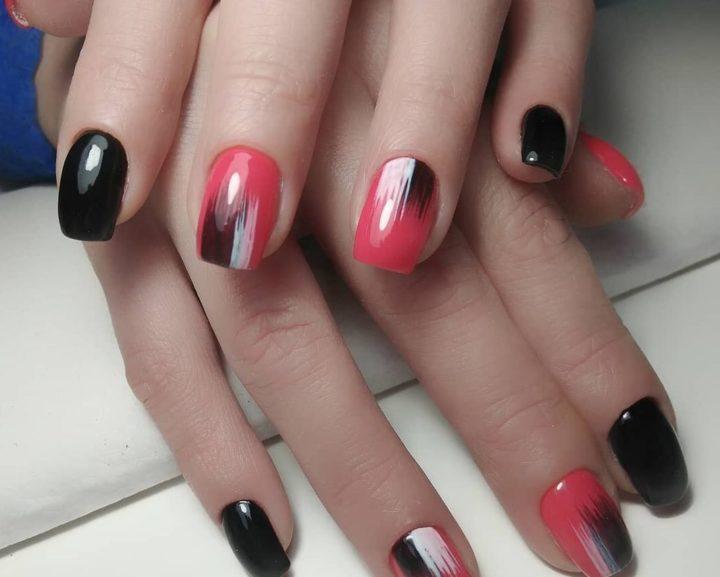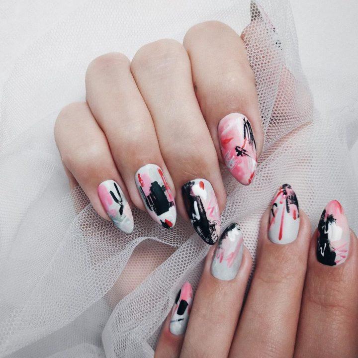 Произвольные мазки краски наносятся на ногтевую пластину в хаотичном порядке. Конечно, их можно структурировать и сделать более аккуратный маникюр, но весь смысл данного маникюра и заключается в некой небрежности.