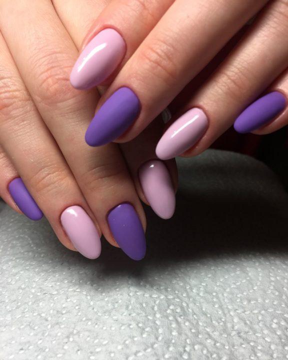 Стильный дизайн «разные руки» обретает популярность с небольшими изменениями. В моду входит сочетание с матовым топом. Ногти на руках покрываются разными оттенками, сверху наносится матовый топ. Такой маникюр смотрится эффектно, стильно.