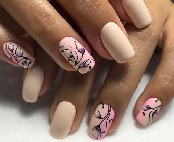 И удачно дополняется блестками, конфетти, паутинкой – в той же гамме. Кроме того, пастельную нежность хорошо дополняет изысканная графика, флористика, геометрические элементы и абстракция. Главное – обойтись без броских тонов.
