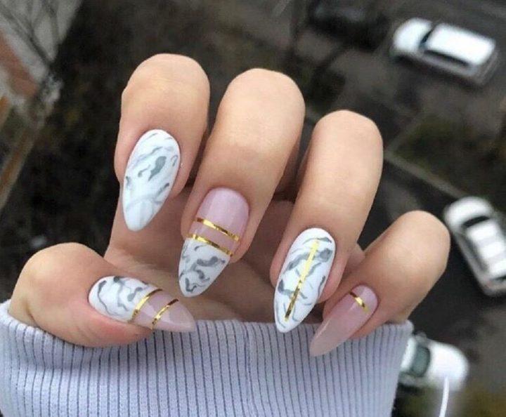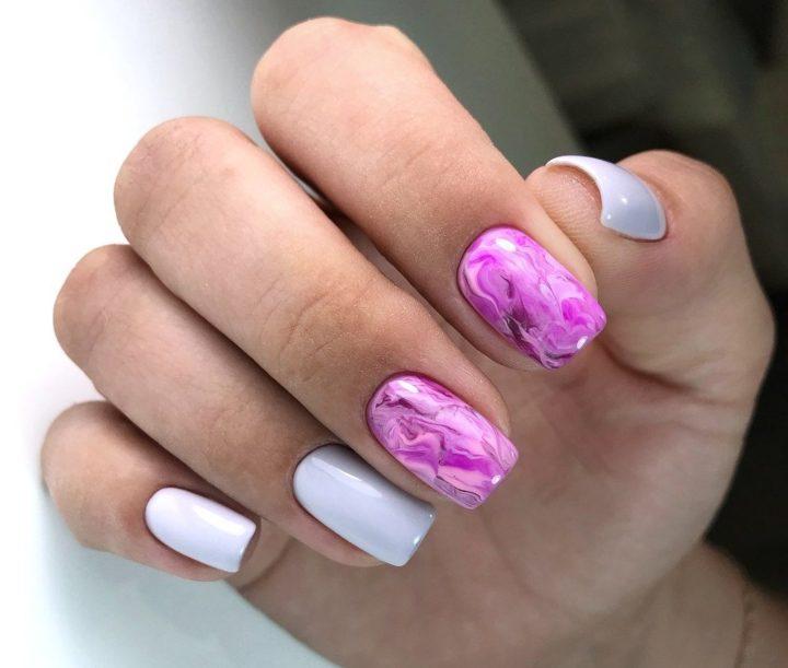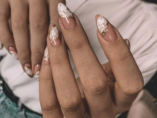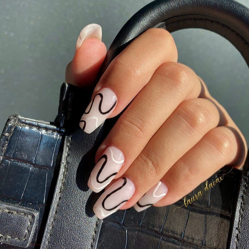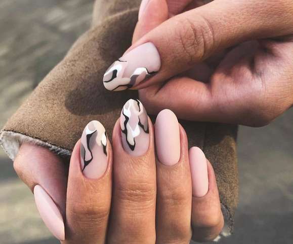 Да, никто не забыл о ценителях вкусного кофе. И тренды маникюра 2023 включают в себя эту тенденцию. Речь идет о той текстуре, которая получается при вливании молока в кофе – красивый прихотливый узор, который прекрасно смотрится на ногтях.