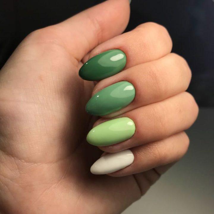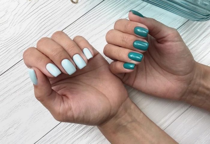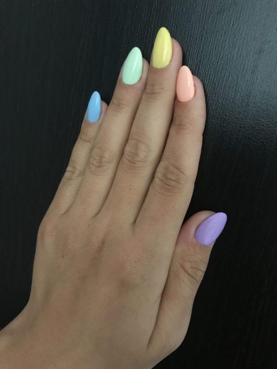 Помните, что не обязательно красить ногти во все цвета радуги, можно подбирать оттенки отличающиеся на один, два тона.