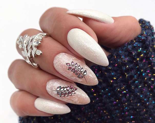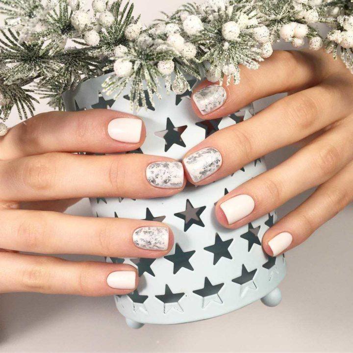 В этом сезоне ногти зимой украшают фольгой, металлическими полосками, обширными украшениями и блестками.