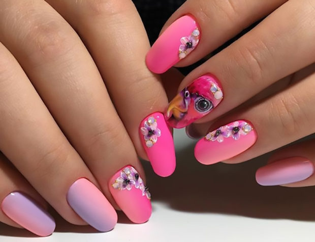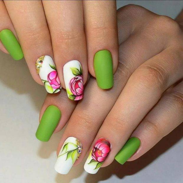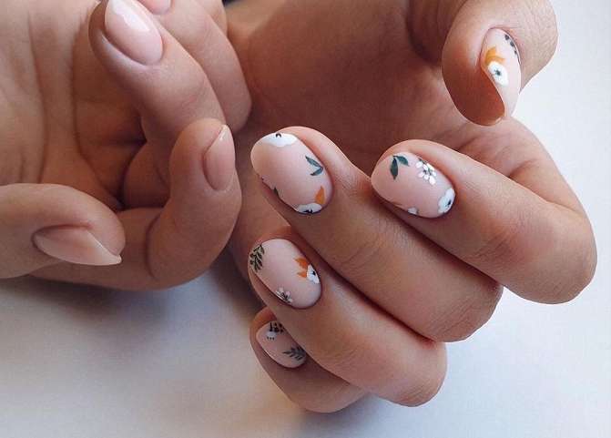 Еще один не новый, но обновленный тренд, радующий любителей цветов и растений. Стать ближе к природе можно и при помощи маникюра. В этом сезоне актуально монотонное исполнение на нюдовой или пастельной основе, часто – матовой.