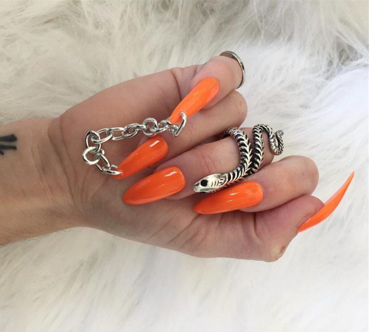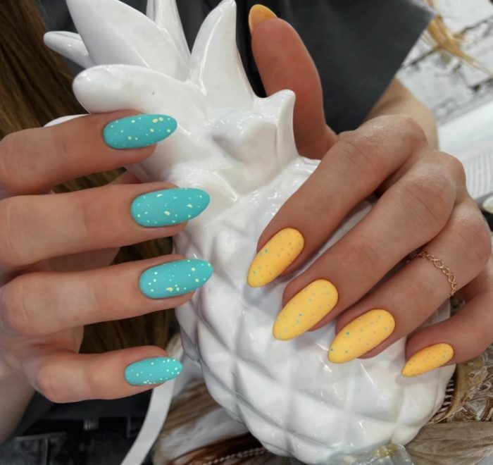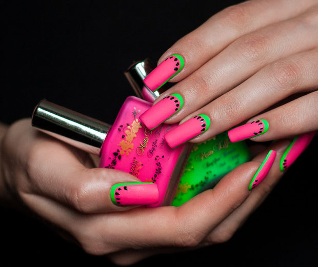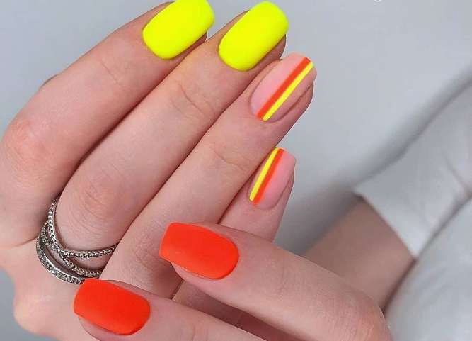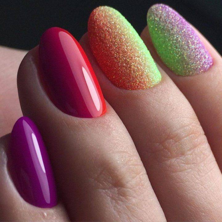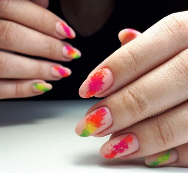 Если вам хочется чего-то яркого и сочного, вам понравится этот тренд. Неоновые оттенки и контрастное оформление ногтей – один из трендов 2023 года. При этом можно сочетать несколько ярких тонов, или же, играть на контрасте неона с глубокими или нежными, но спокойными тонами.
