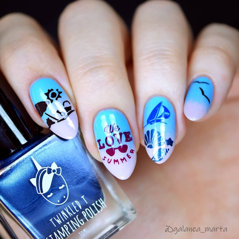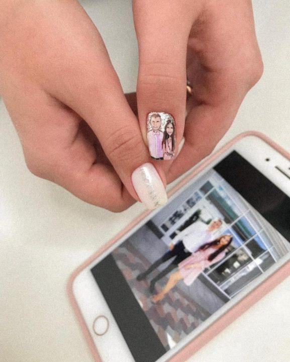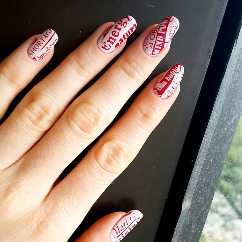 Печатный маникюр смотрится эффектно как на длинных ногтях, так и на коротких.