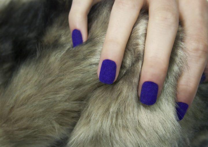 Мохнатый маникюр известен также под другим названием, как бархатный. Он создается с помощью порошка флоки, что представляет из себя тончайшие нити разной длины и цвета. Благодаря флоку ваши ноготки станут похожи на кусочек бархатного материала.
