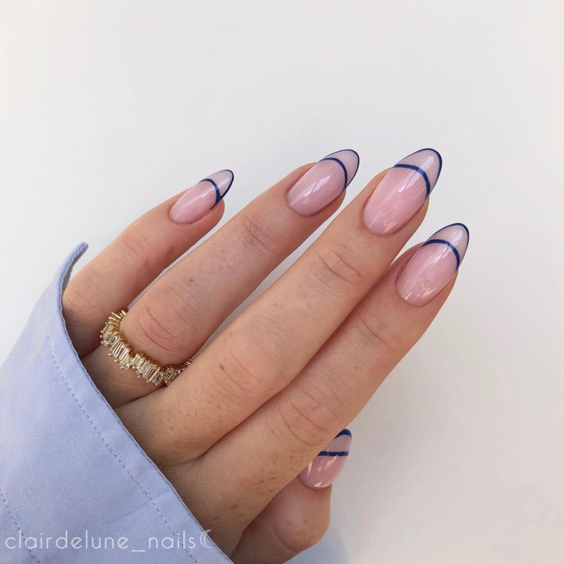 Если классический френч тебе уже поднадоел, но к более смелым экспериментам ты пока не готова, советуем обратить внимание на двойной френч — как понятно из названия, этот дизайн представляет собой две полукруглые линии одна над другой на однотонном фоне. В случае с этим нейл-артом не обязательно ограничиваться полупрозрачной базой и спокойными цветами: креативный формат дизайна располагает к тому, чтобы выбирать самые яркие и нестандартные оттенки, какие только захочется