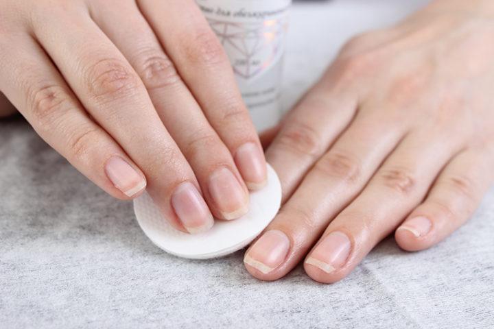- Первым делом стоит снять старое покрытие (если оно есть). В случае с гель-лаком для этого используются специальные зажимы с жидкостью для снятия лака и пилочка, либо насадка на фрезу. Сейчас все больше мастеров предпочитают второй вариант, поскольку он быстрее, удобнее и безопаснее.