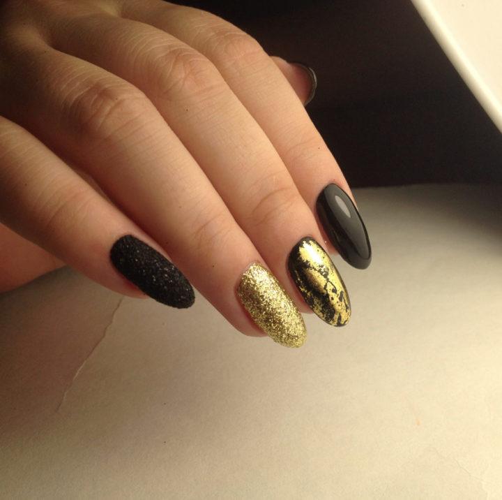 Особенно на длинных. Естественно, его лучше сочетать с покрытием гармонирующего оттенка. Сочетается он и с золотой или глиттерной отделкой.