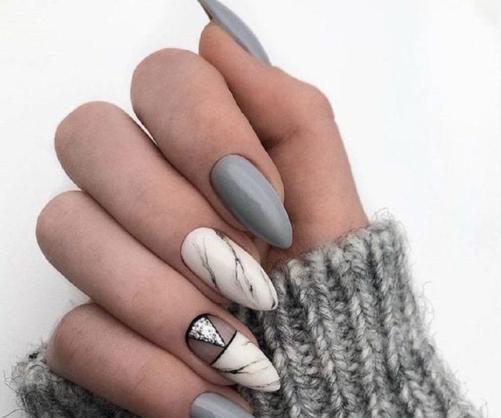 Популярное использование серых лаков – основа под нейл-арт. С серым цветом гармонируют актуальные трендовые оттенки на сегодняшний день: красный, желтый, коричневый.