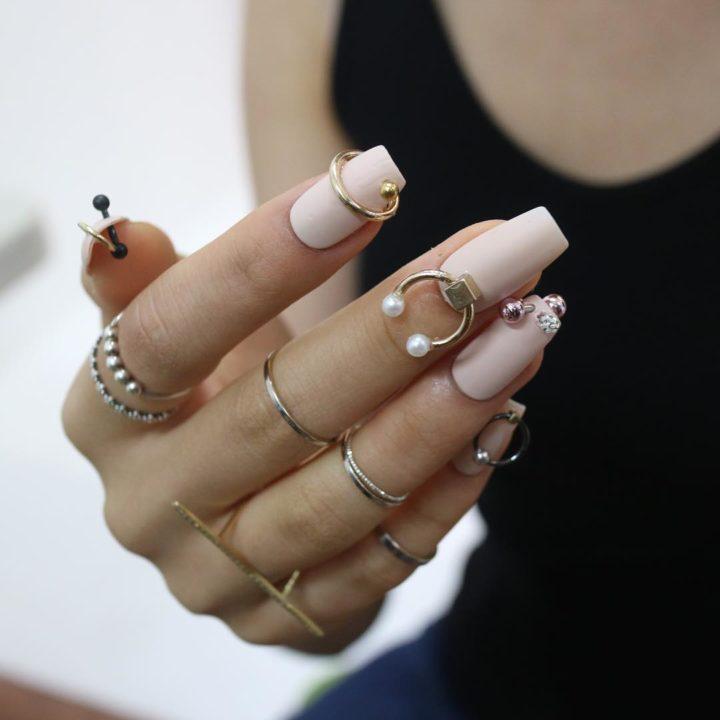 А вот оставшиеся формы могут быть более капризны, поэтому о них поговорим отдельно. Четкие, квадратные ногти подойдут только девушкам с небольшими, тонкими пальцами. Он визуально сокращает длину ногтя, за счет чего короткие и крупные пальцы могут смотреться в невыгодном свете. Зауженный овал и миндаль, наоборот, сделают пальцы тоньше и длиннее на вид, но будут смотреться наиболее гармонично на изящной руке. Форма “балерина” подойдет для крепких ногтей и узких ногтевых пластин, а стилет — для узких пальцев и небольшой ногтевой пластины.