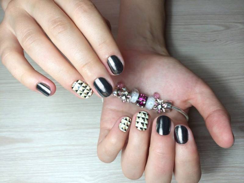 Гибридный маникюр позволяет создать стильный дизайн на ногтях, а также скорректировать форму ногтевой пластины