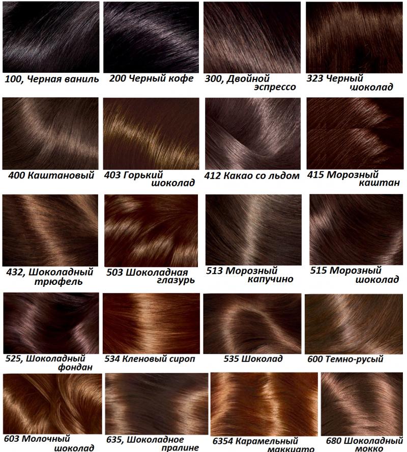 Цветовая палитра краски наиболее широко представлена каштановыми оттенками. Светло-каштановые и темно-каштановые представлены девятью и семью цветами соответственно.