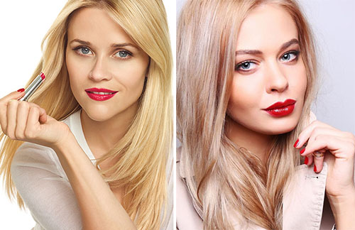 - Самые удачные оттенки для блондинок: вишнёвые, пурпурные, фуксия, розово-красные. Морковные приемлемы для смуглых.