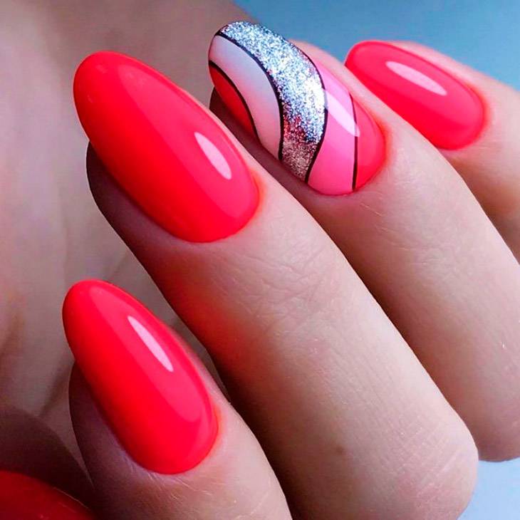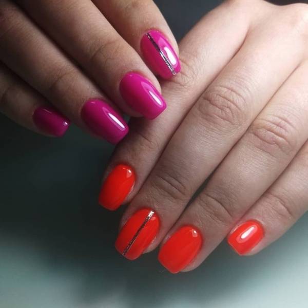 Красные ногти с дополняющим цветом — отличный вариант освежить свой маникюр. В этом сезоне популярен красный с оранжевым. Такой маникюр не только подойдет под любой стиль, но и будет очень эффектно смотреться в повседневной жизни. При этом цвета могут быть разными.