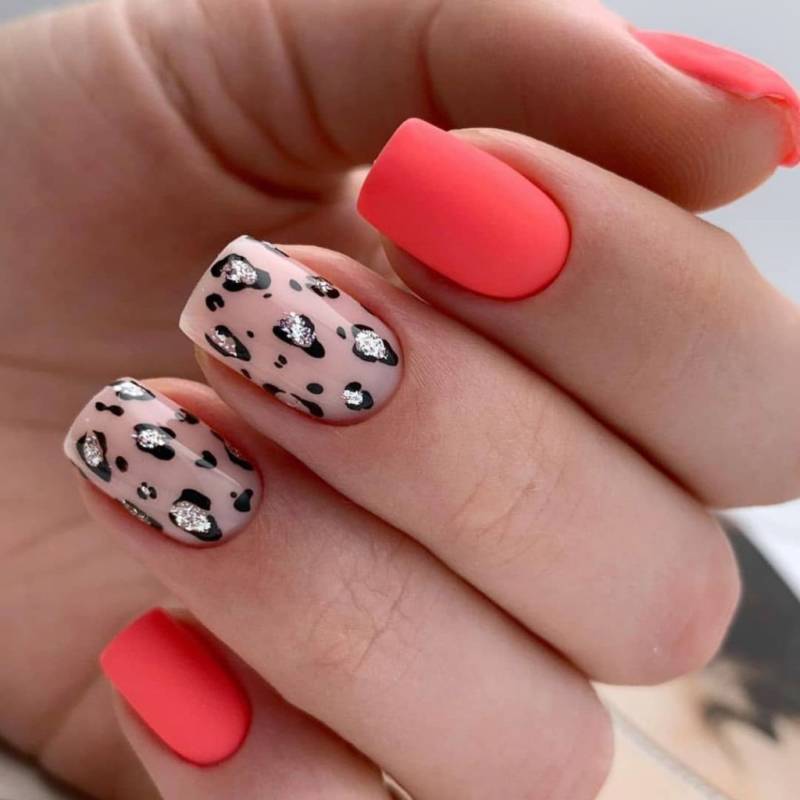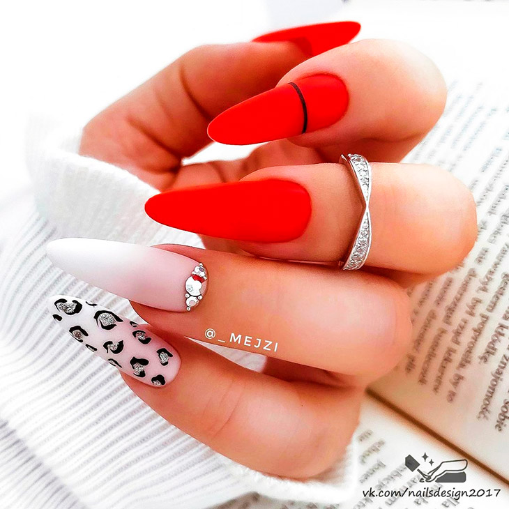 Красный маникюр с хищным принтом — это что-то необычное и запоминающееся. Такой вариант будет уместен к любому празднику, да и просто для повседневной жизни.